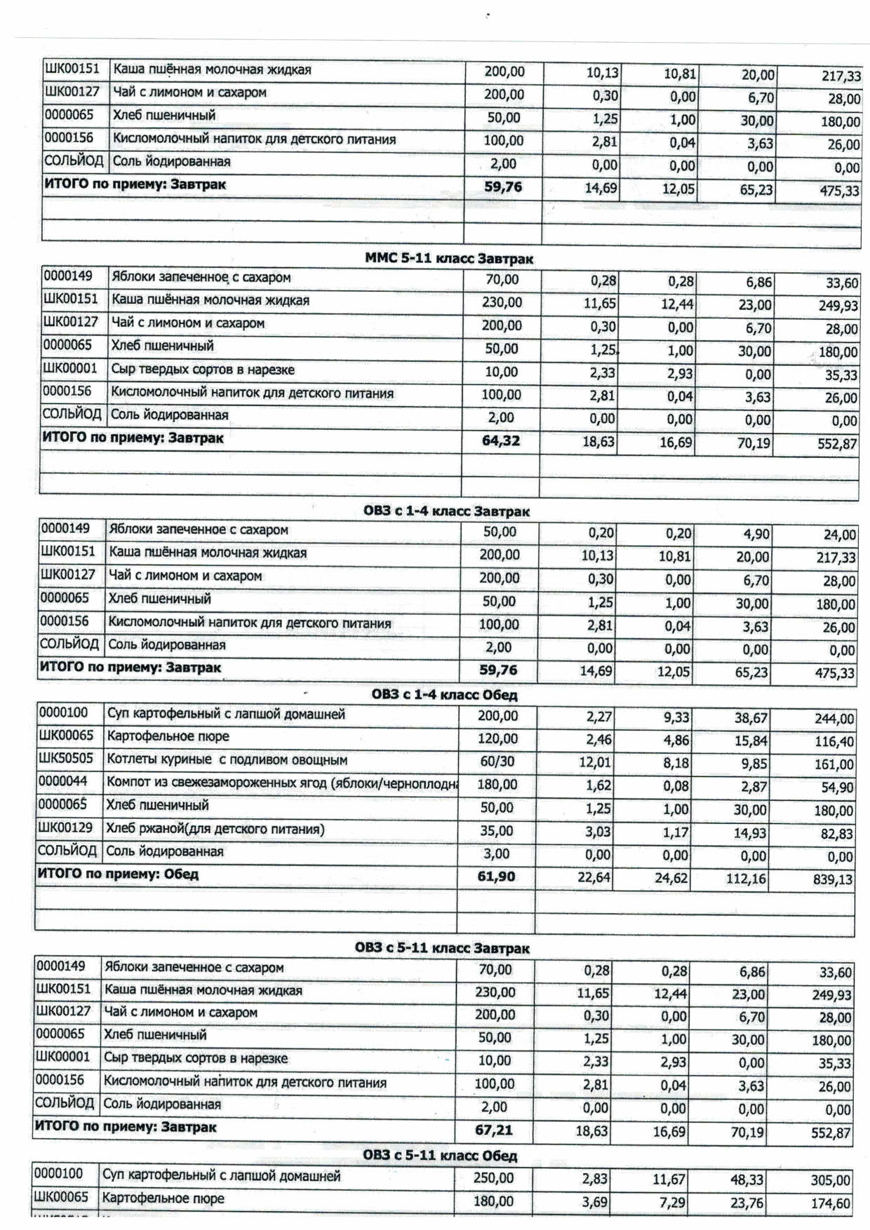 (ОВЗ,ММС,опекуны, 1-4 классы)